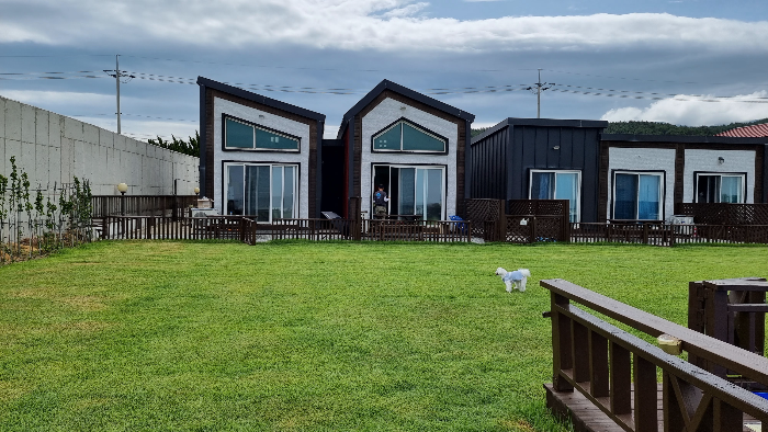 잔디가 잘 가꾸어져 있어서 아이들이 놀기 좋습니다. 그리고 각 숙소마다 문이 설치되어 개인앞마당이 있고, 전체 놀이터에는 울타리가 설치되어 밖으로 나가지 않고 안전하게 놀 수 있어서 좋아요.
