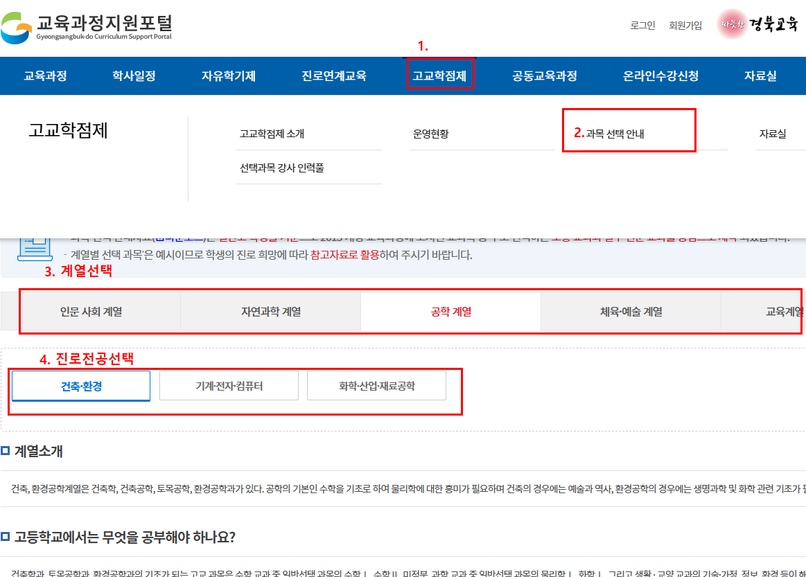 - 학교 개설 여부: 개설되지 않은 과목은 온라인/공동교육과정 수강 가능