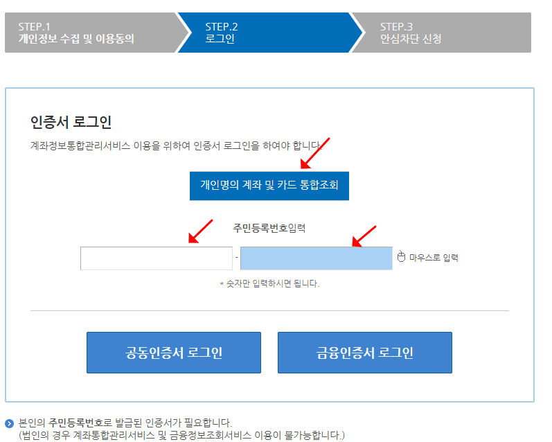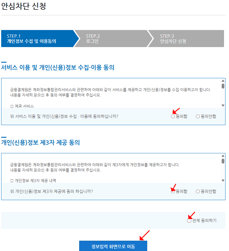 계좌정보통합관리서비스 여신관리 안심차단 서비스 신청방법