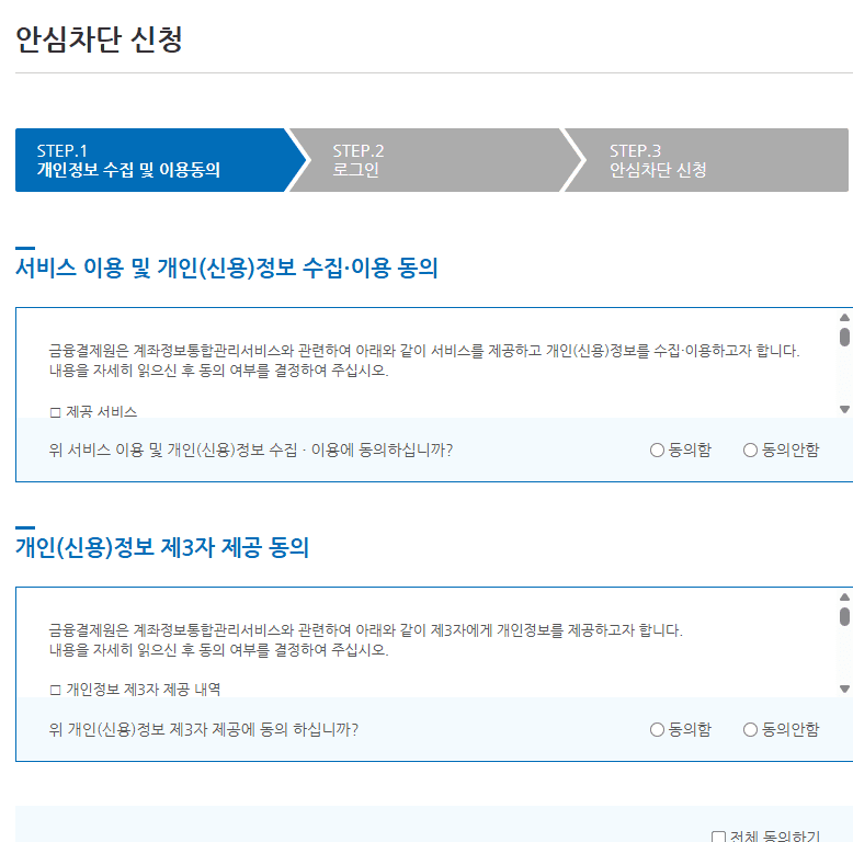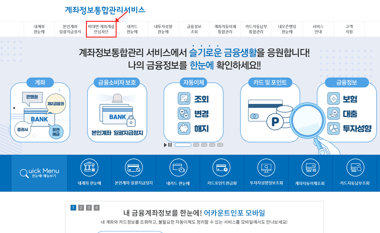 계좌정보통합관리서비스 여신관리 안심차단 서비스 신청방법