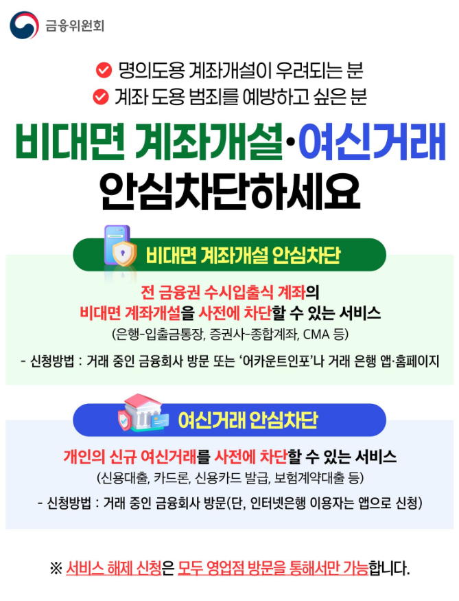 - 해제의 번거로움: 차단 해제를 위해서는 반드시 금융기관을 직접 방문해야 하므로 불편할 수 있습니다.