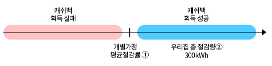 예를들면 개별가정인 경우 한전 관할구역 내 평군 절감률이 8%라면 8%이상 절감한 개별가정만 캐쉬백이 지급된다.절감률이 300kw인 경우 1kw당 30원으로 계산되어 9000원의 감면효과가 있따.