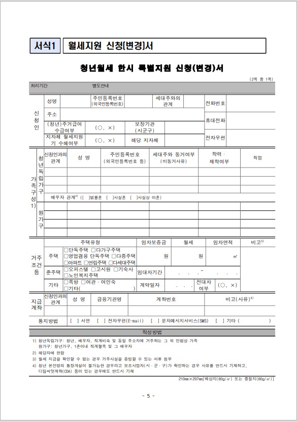 - 청년월세 지원 신청서