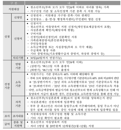 - 한부모가정이 아닌 부와 모 모두 청소년 자년를 1명이상 양육하고 있어야 합니다.