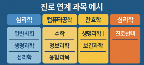 따라서 고1 때는 **공통과목+진로탐색 과목**을 이수하면서 방향을 정하고, 고2부터는 **전공 연계 과목**으로 이어가는 전략이 중요합니다.