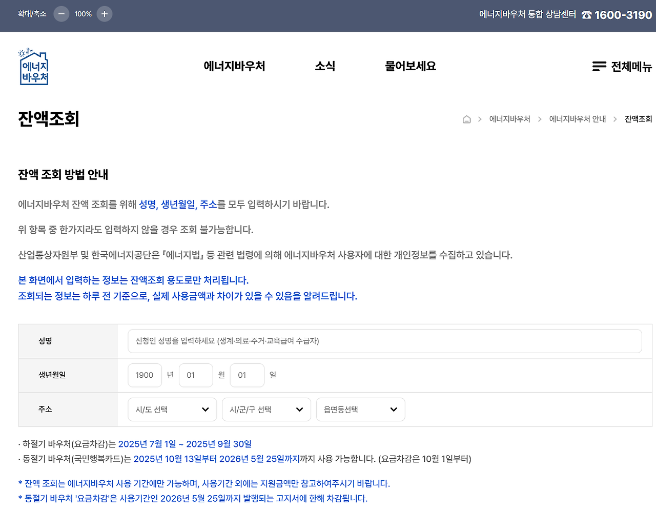- 전화: 에너지바우처 콜센터 1600-3190