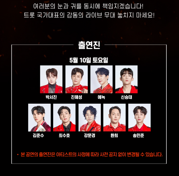 진해성 님의 깊은 감성, 환희 님의 부드러운 음색까지... 모든 무대를 직접 보고 느끼고 싶습니다. 트로트 팬이라면 절대 놓쳐서는 안 되는 순간, 대구 엑스코에서 함께 느껴봐요!
