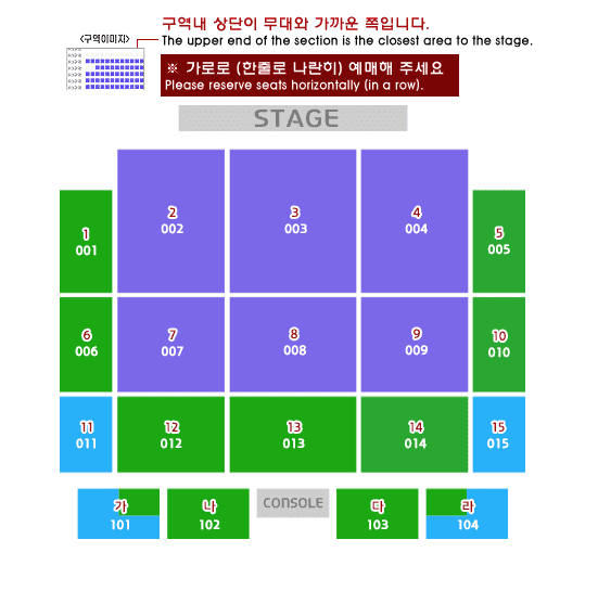 앞쪽에 op박스로 인해 3번째줄까지는 가까이 볼 수 는 있지만 목이 아픔은 감수해야됩니다. 개인적 추천하는 곳은 중앙 4번째줄이 가장 좋았습니다. 거리도 유지되고 op박스로 인해 시야가림, 목아픔이 없어서 좋습니다.